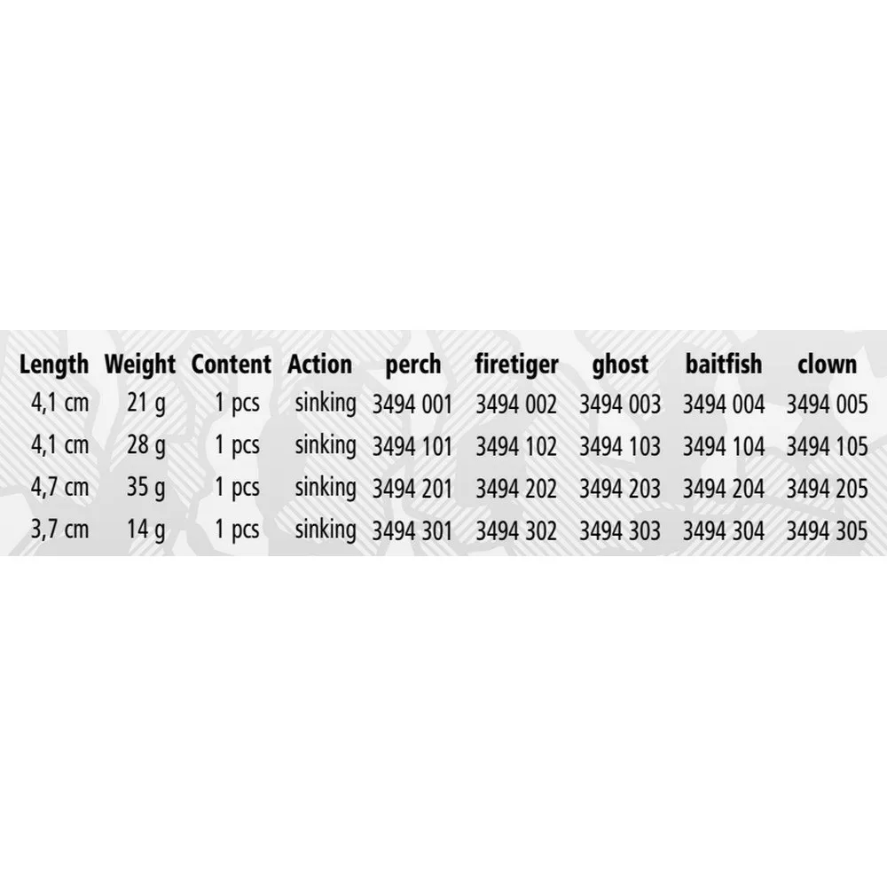 The stocky body of the jig allows precise long-range casting, causes it to sink quickly to the bottom and allows it to be jigged or retrieved quickly.