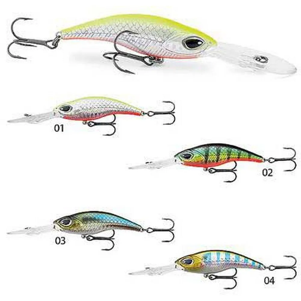 Extremely sophisticated crank bait, which perfectly mimics small fish under more than 2 meters deep. It is also effective in running waters, for catching big size predators, such as asp, black bass and pike.