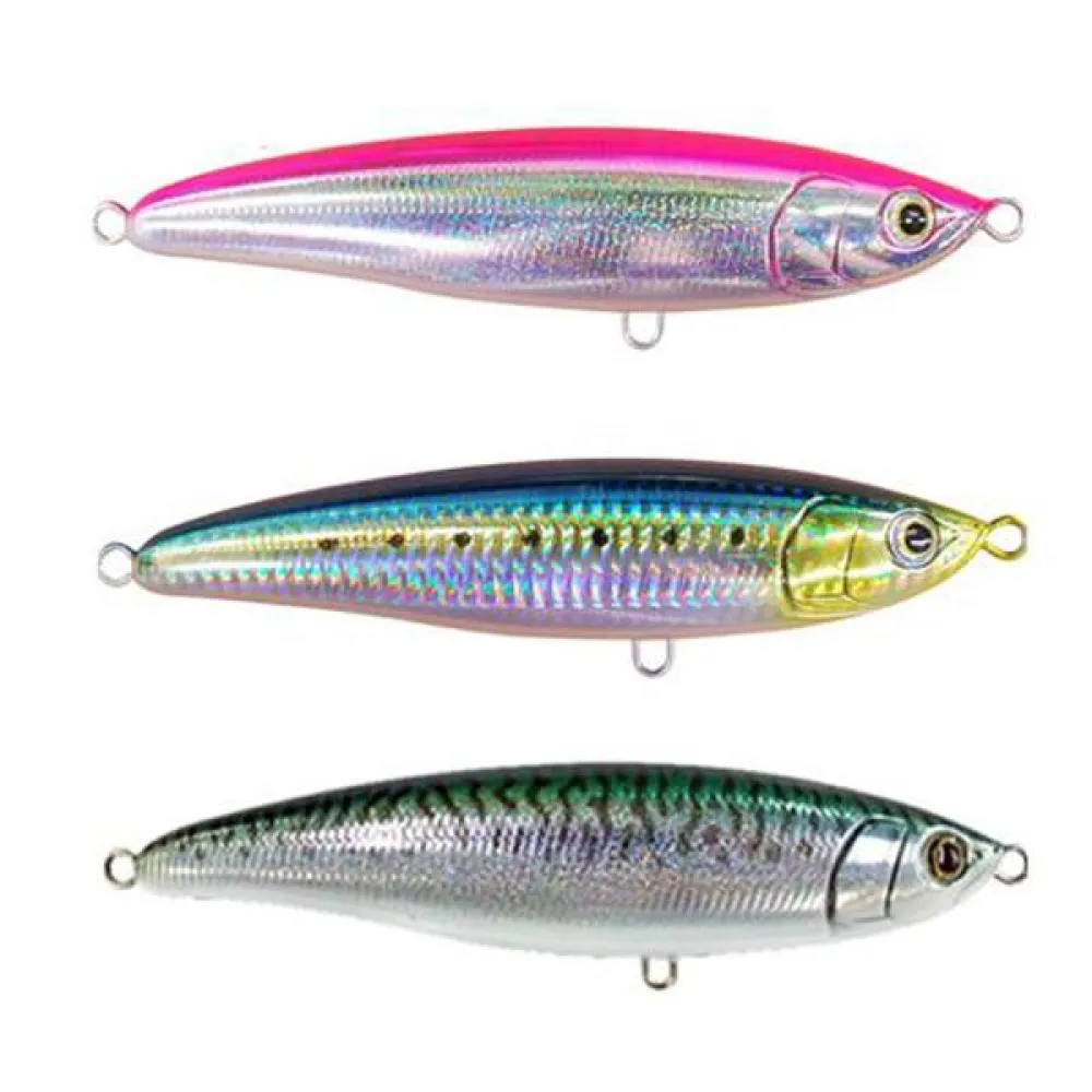 Trolling lure with a highly realistic swimming action it features an inner metal structure which runs from the front ring through the centre ring to the back one making the body unbreakable.