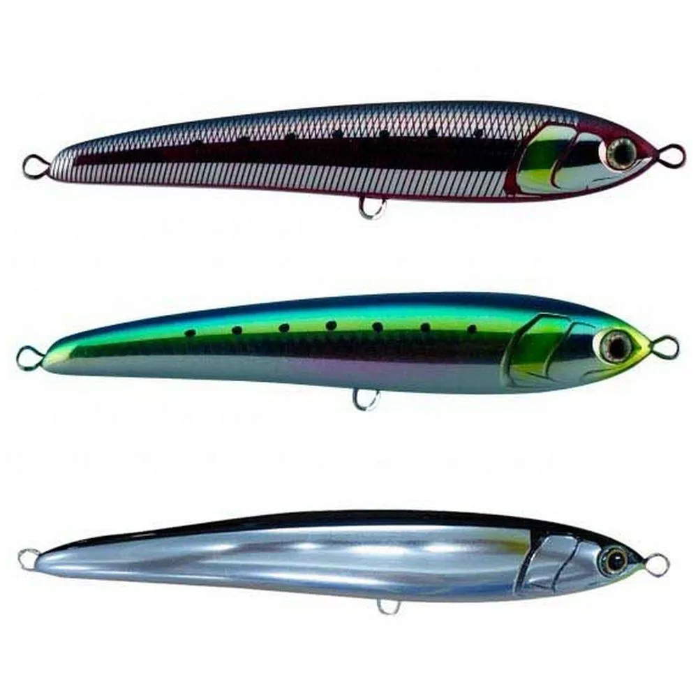 Powerful pencil bait for multipurpose use. Thanks to its high weight and shape we will launch it to incredible idstancias, being perfect for those days when it is very difficult to approach the ‘aviaries’ With it we will be able to tempt the tunas in continuous collections as well as jerking; Zigzagging at the water’s edge or ‘sliding’ a couple of spans below the surface.