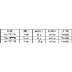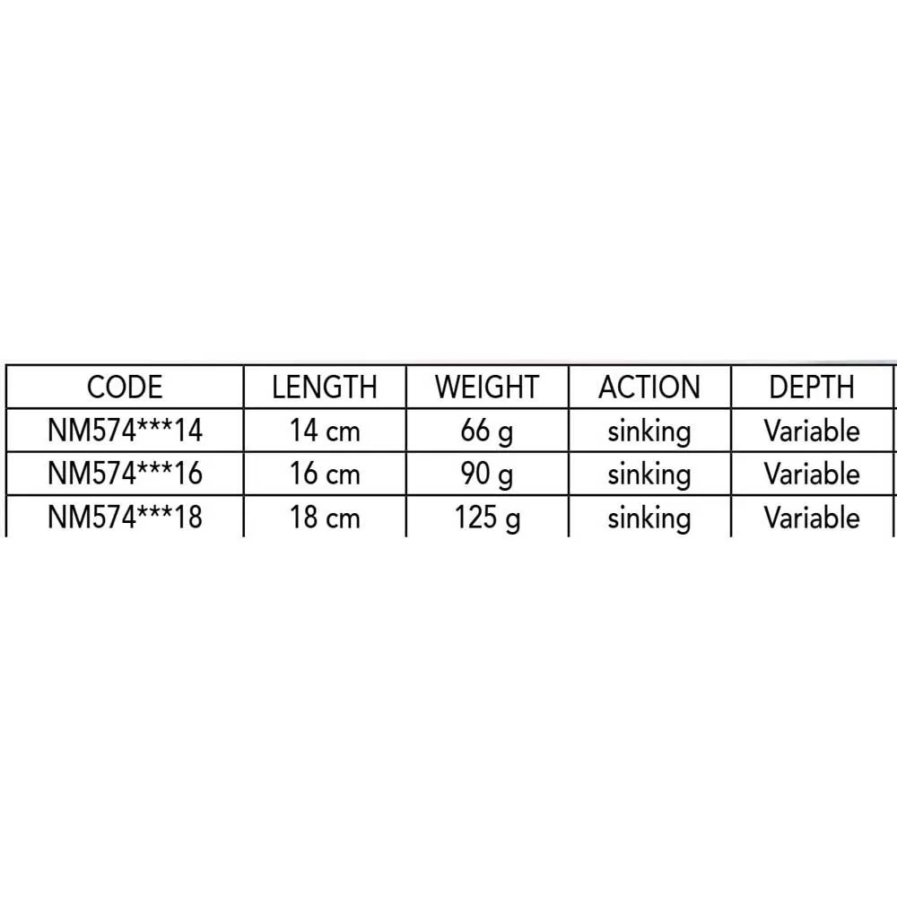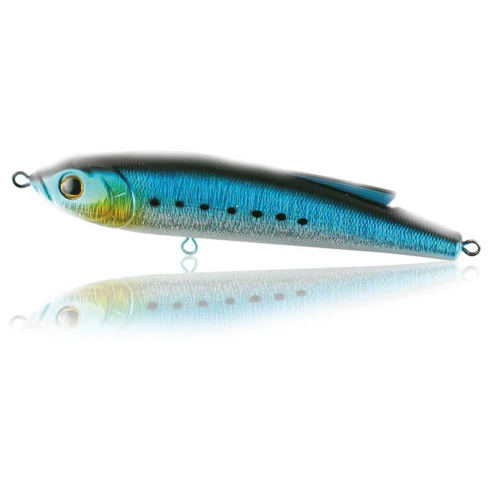 Heavy weight saltwater sinking lipless strong bait. The VMC treble hooks PS salt water treated are connected with a wire inside the body of the bait. A dorsal fin makes it swim steadily. This bait can be used for popping, trolling, casting even for big catfish or big pike, not just in the sea.