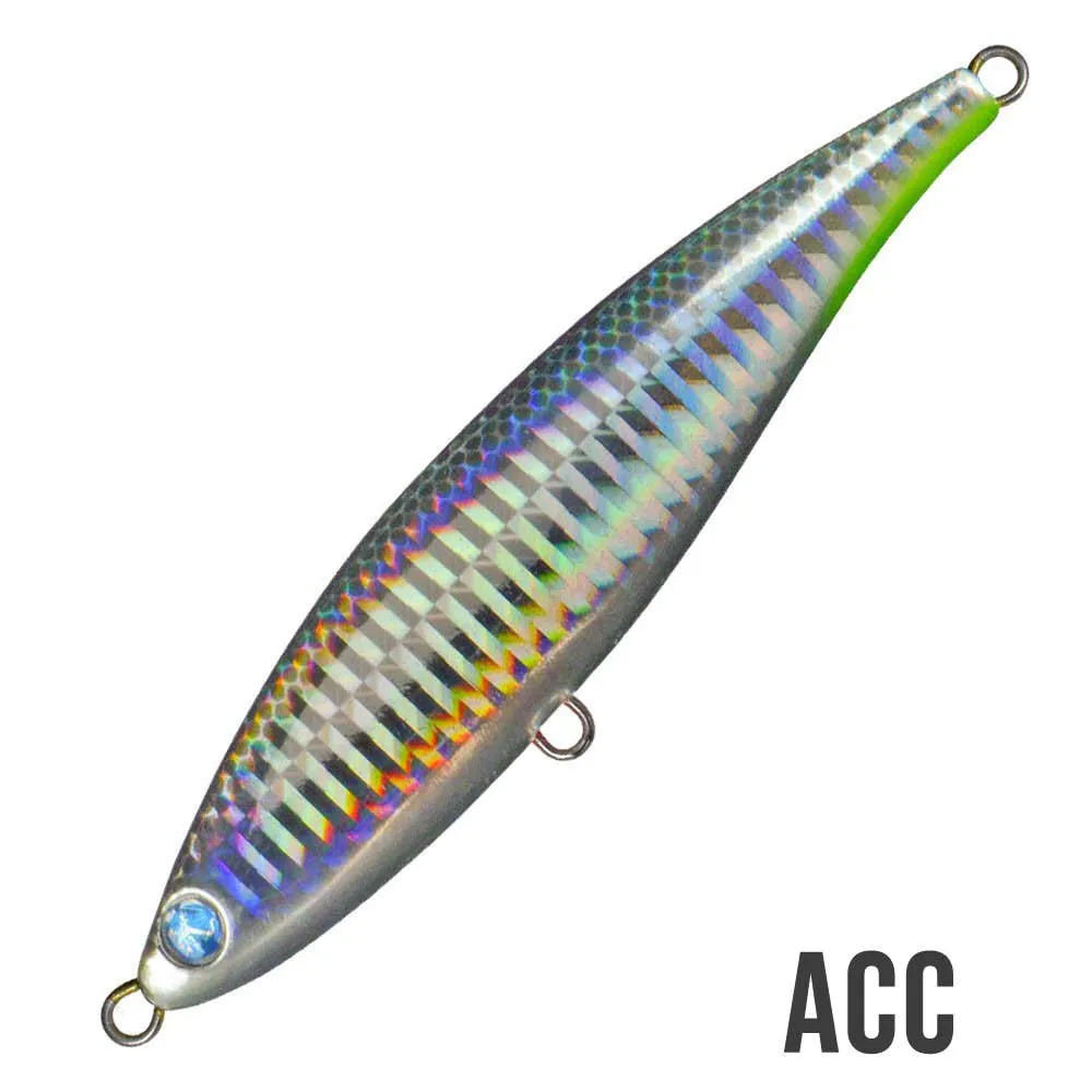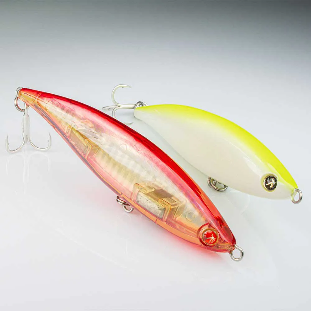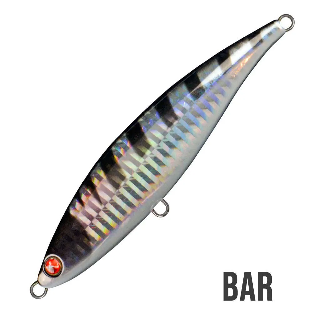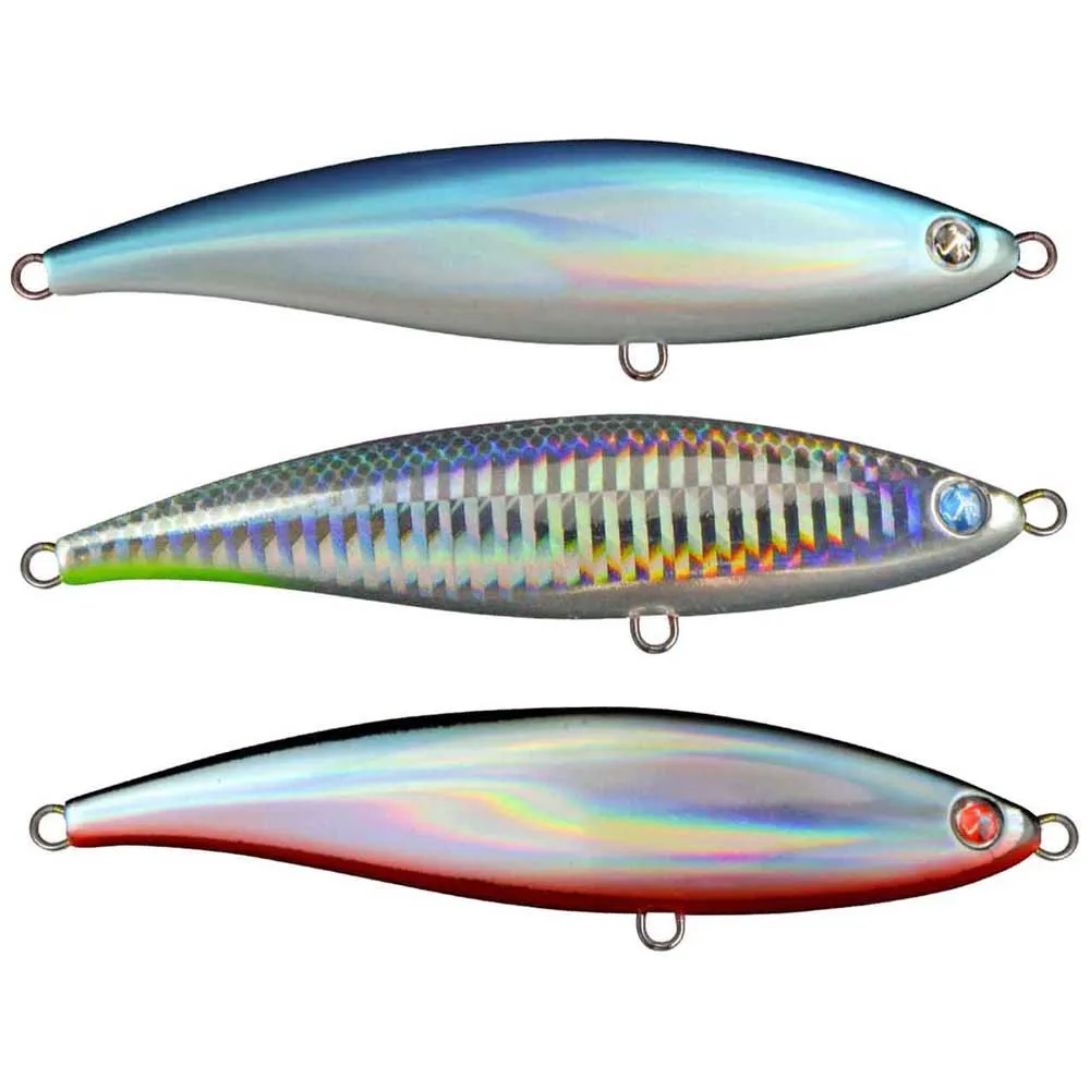 Janas is a sinking lipless pencil bait and belongs to that category of lures that is having a recent and interesting evolution as they allow the angler to animate it to his liking depending on the circumstances. Thanks to its technical characteristics it can be casted very far becoming the eclectic bait par excellence. Janas in Sardinian language means “fairy”, because it seems to dance in the water when alternating regular retrieves, in which the lure performs a slalom action in long pauses in which, rolling, emits large flares while falling freely in the deep or current. Good for any marine predator and particularly recommended in feeding frenzies of small bonitos and medium sizes. The standard equipment consists of two treble hooks, strong 3X, #4, but it can also be used a # 2/0 single hooks or, in case used for bluefin tuna, even a #4/0 single hook in tail of adequate strength.