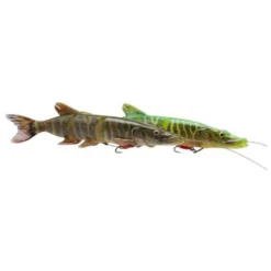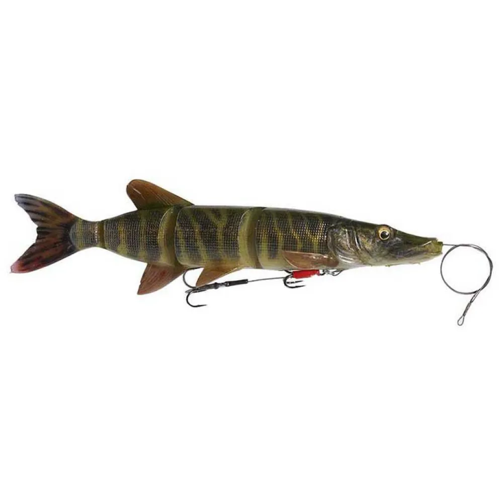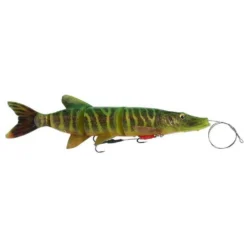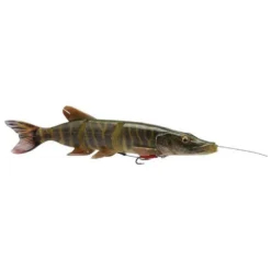 Based on a 3D Scan of a real baby pike with perfect details, Photo Chrome skin print and added DNA scent! The small jacks is in periods the favorite prey for Big pike and these super realistic lures will be deadly! The lure swims with the most realistic S-curve action, and will sink slowly on spin stop! Designed with our Brilliant Linethru design, the lure will slide up the trace away from the shredding teeth and the Pike cannot use the weight of the big lure to throw the hook.
