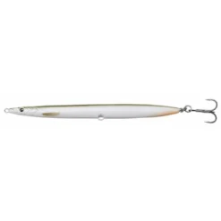 Based on a 3D Scan of a Real Sandeel. Swims with a seducing slim S-curve, head slight up. On the stop, the lure flutters and rolls backwards – triggering hard strikes. The lure has a built-in rattle chamber, that sends out a loud clicking sound, when twitched. Extreme long cast design for amazing coverage. Supplied with both a single and a treble hook, with the option to add the treble hook to the belly as well.