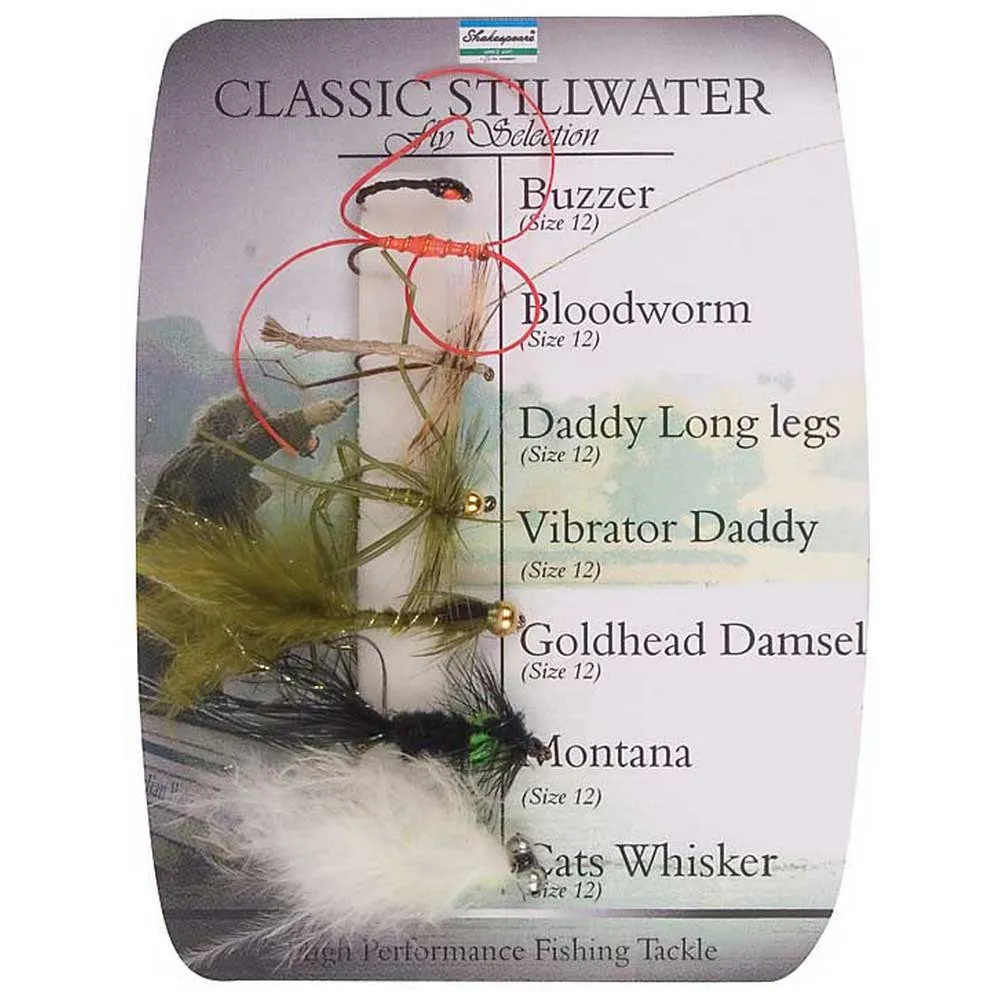 CLASSIC STILLWATER Fly (Hook Size), Cats Whisker Standard (10), Montana Green (10), Olive Marabou Damsel (10), Olive Vibrator (10), App´s Flexi Floss Worm Red (10), Black Glow Buzzer (12), Natural Deer Hair Daddy (10).