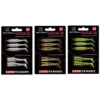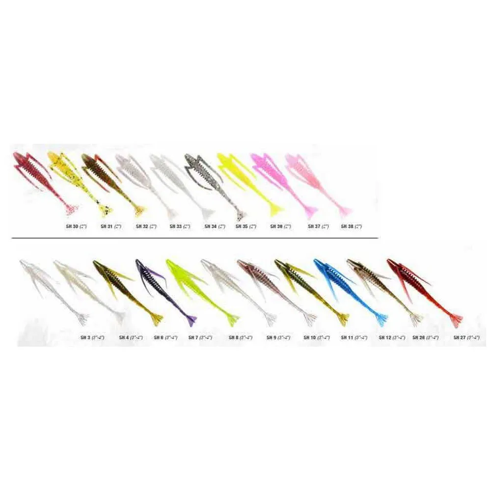 This small technological shrimp is the link between the representation of nature and the artificial reconstruction of what attracts most predators that eat it. Everyone can copy reality, but few are able to understand the essence and reproduce artificially the key features that make a soft bait irresistible. The ring body allows perfect rigs making it anti-snag and facilitating the hook spill . The thin wings at the sides reproduce the vibrations that would be emitted in nature by the legs, also contribute to asset the lure with jerked retrieves. Shrimp-U finds its greatest effectiveness in the pause during the fall and latch on the bottom, to be used weight-less in โstop and goโ retrieve, where any turbulence is enough to put into action all the lure. Perfect in version shaky head, also maintains its attractive power presented with texas rig and drop shot. Available in three sizes 2โ, 3โ, 4โ and many colors which allow it to be used successfully both in fresh water and sea. The tail has a triangular shape that can be fragmented through existing incisions. If left intact, it is suitable for medium-slow retrieves and while in jerking follows a sinusoidal trajectory. If, on the other hand, you want more snappy movements, you can remove the two internal membranes and thus create three very vibrant appendages. Designed by Marco Calloni.