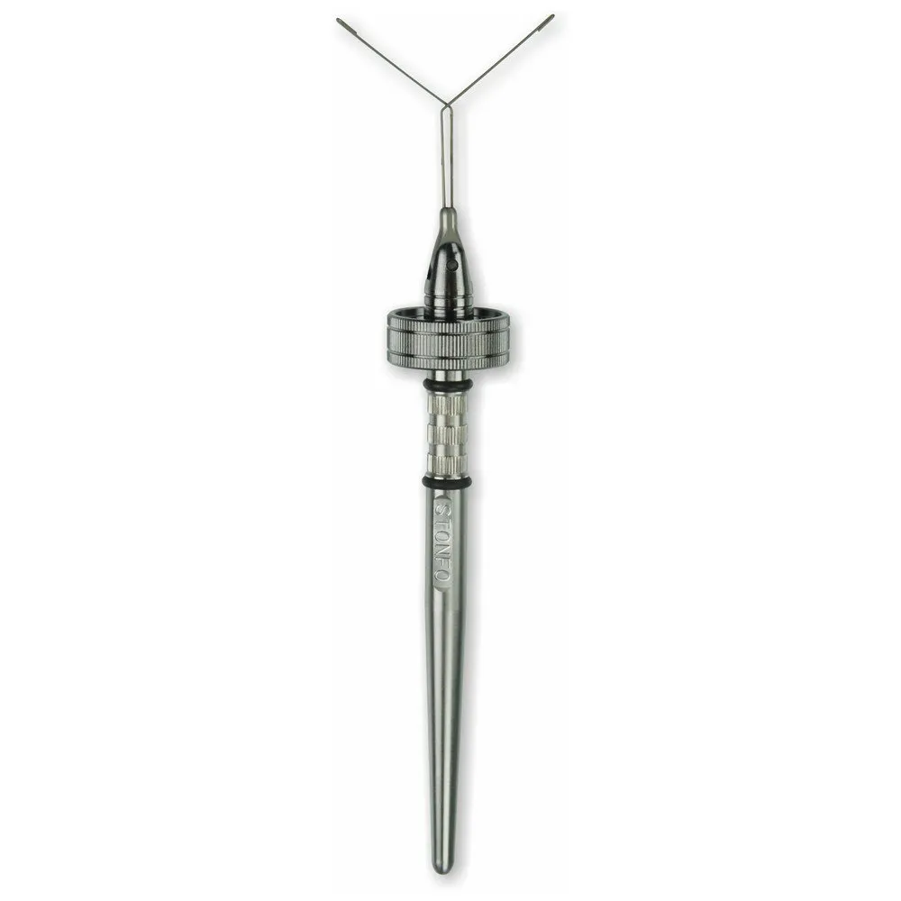 Superior quality dubbing tool made of stainless steel with a ball bearing inside that allows a fast and smooth rotation. Its swinging head permits 180 degrees of free swinging motion with block at center position. The positioning of the head at 90 degrees prevents unrolling of the dubbing that can be wrapped directly on the hook without using hackle pliers. Comes with complete instructions.