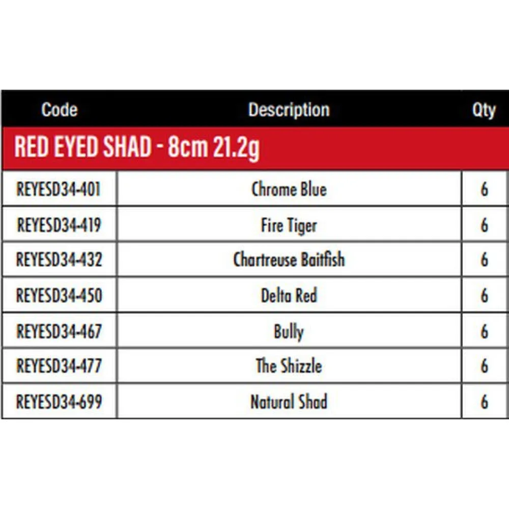 The Red Eye Shad has become the standard bearer lipless crankbait on the pro tour. Designed by our National Pro-Staff, the Red Eye Shad has incredible action and features some awesome paint jobs, premium hooks, 3D eyes and free floating rattles to give you the best action and sound of any lipless crankbait on the market. The action when it free falls is awesome.