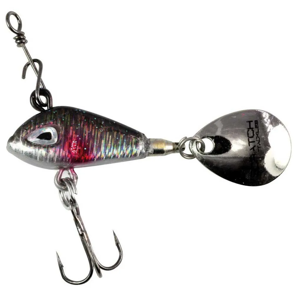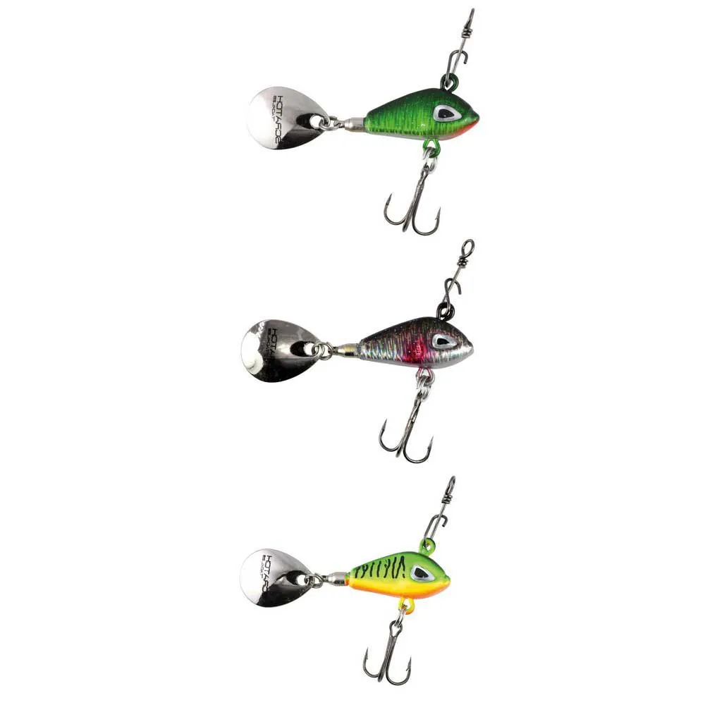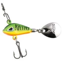 This super dense spintail jig launches at impressive distances. It offers the particularity of having the paddle directly connected by a rolling ball to the body of the lure itself. By turning at the slightest strain, this colorado produces very intense vibrations that propagate throughout the water column. During the high frequency rotation of the paddle, it transmits its pulsations to the whole body and therefore makes it vibrate intensely, thus increasing its attractiveness.