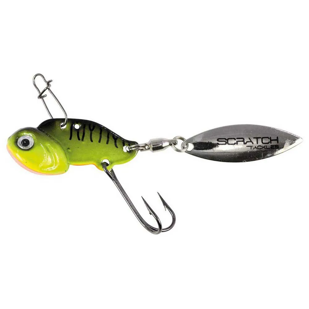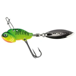 The Vera Spin Shallow is an ultra dense spintail jig that allows you to reach very long distances of casting and deep fishing. The distribution of its weight is particular since it is located at the level of the head. This low center of gravity and shifted forward gives it a very inclined position during recovery. This specific balancing accentuates the vibrations of the body and gives it a hyper dynamic and very vibratory swimming. A high-quality rolling ball ensures perfect rotation of the long willow pallet (willow leaf) located at the tail. The accumulation of all these vibrations makes it perfect for quickly prospecting large bodies of water in search of active fish.