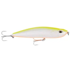 This chubby topwater features a nervous, tight walking action. At rest it stays with its head above water, responding almost instantly to the demands made by the angler’s rod. Perfect for tempting bass and deadly for enticing sea bass in estuaries and river mouths.