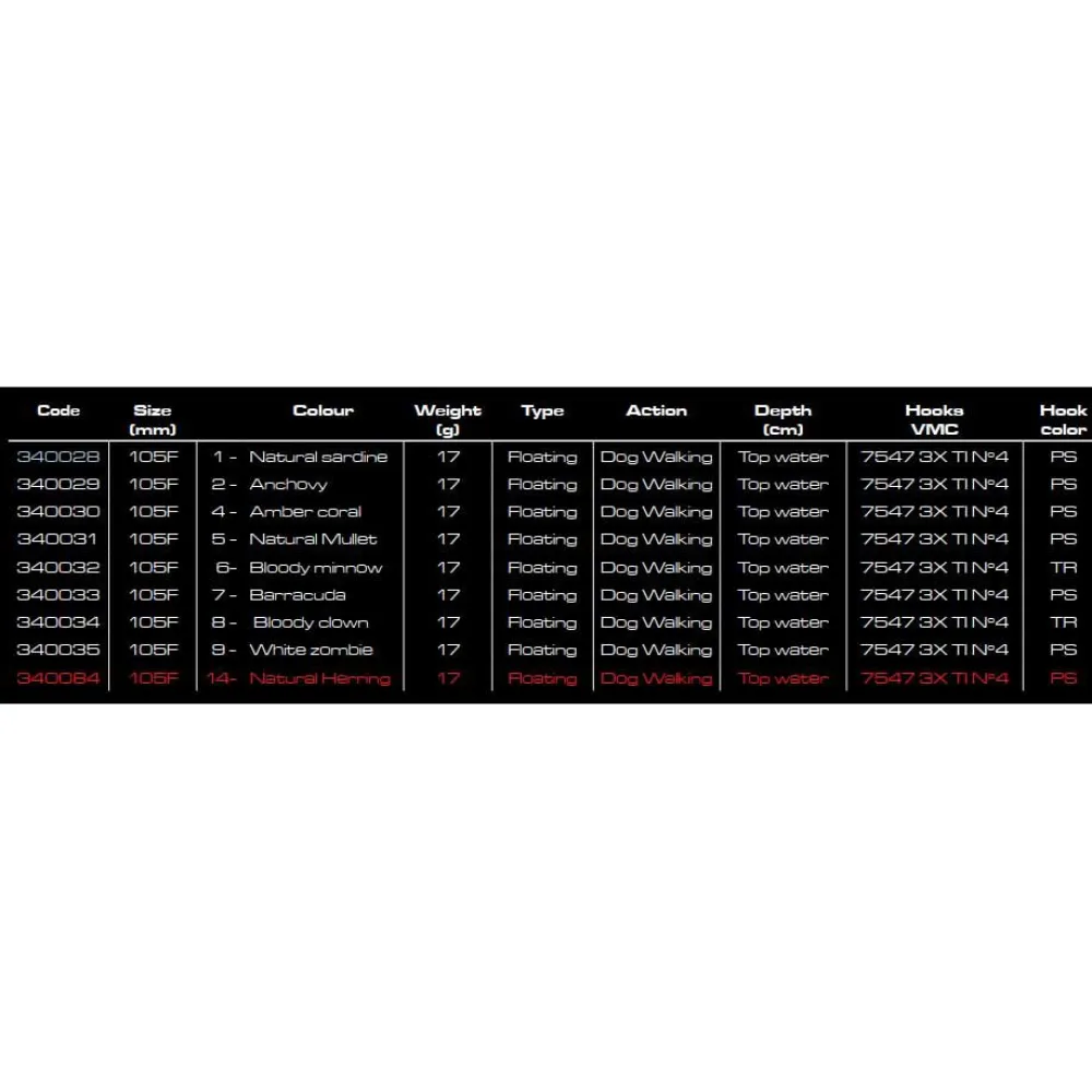 Mounted with the sharp hooks “VMC 7547 Ti spark point”, with pointed inwards points to avoid the damage treble hooks cause on the lure’s surface